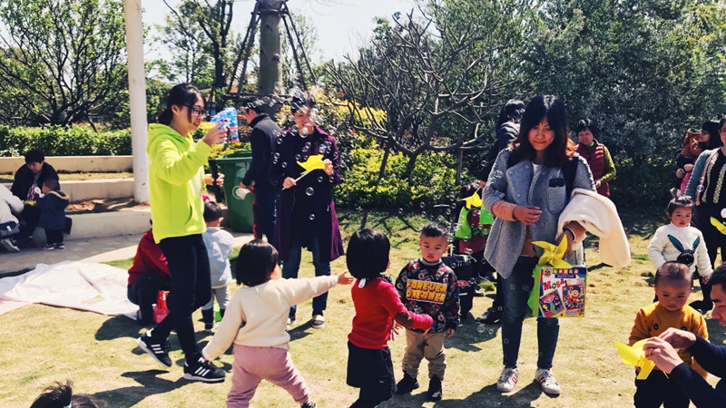 愉快的造树时光结束啦,宝贝们在草地上与老师们快乐地玩耍,这样欢乐的气氛才不辜负今日的明媚阳光啊。