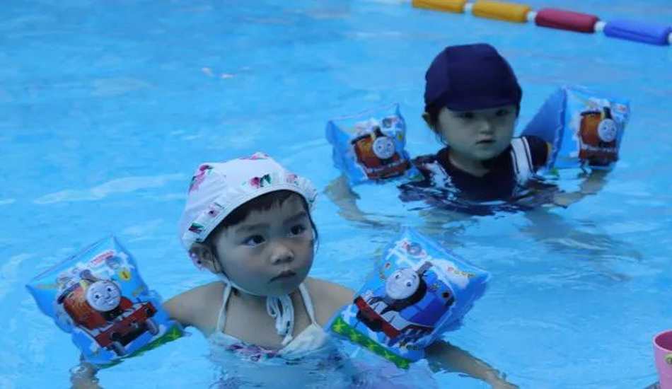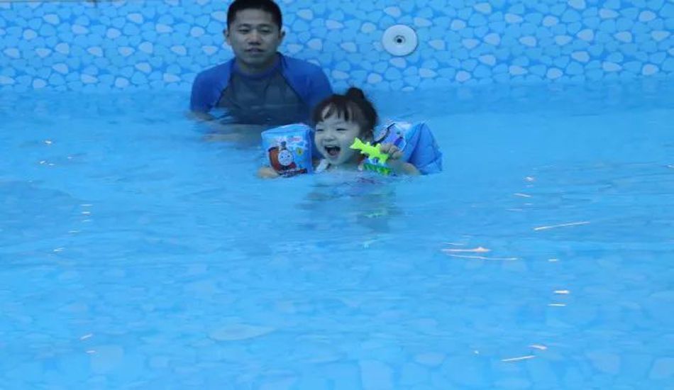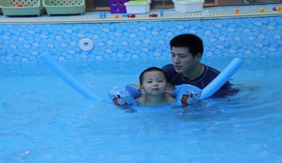 老师让宝贝们慢慢熟悉水温和水感,宝宝们对水已经没有恐惧感啦